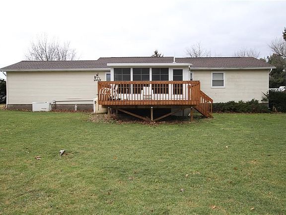Great Opportunity! Cheaper than rent! Good sized home with Florida room out the back and a deck! One bedroom could be split into two. Full bath with laundry included. In the Village, garbage included in Village tax. Municipal electric. Propane backup generator. The living room has 2 entrances to the kitchen for great flow. Large garage. Good sized yard with trees.
