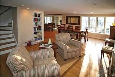 Beautifully updated North Chatham saltbox. Near Chatham center and 1/2 mile from Cow Yard Beach with direct access to the ocean. Comfortable home with open floor plan. Large beamed cathedral ceiling family room with fireplace and French doors leading to lovely patio. Features include 2 fireplaces, remodeled granite and stainless kitchen, and tastefully finished basement with recent bathroom - for extra entertainment/sleeping area or office/exercise space. Outdoor shower! Great summer rental.