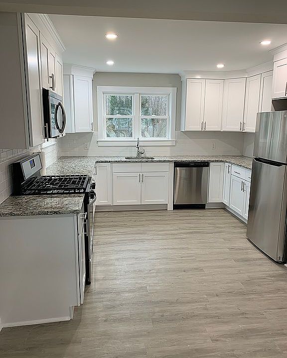 Completely renovated 4 bedroom / 1 bathroom ranch house with attached 1 car garage in the Winston Park section Featuring white shaker cabinets, granite countertops, stainless steel appliances, vinyl plank flooring throughout, freshly painted, new interior/exterior doors, recess lighting, new HVAC system, new 40 gal. water heater and much more. Large back yard - lot size 0.34 acres. Great location for commuting