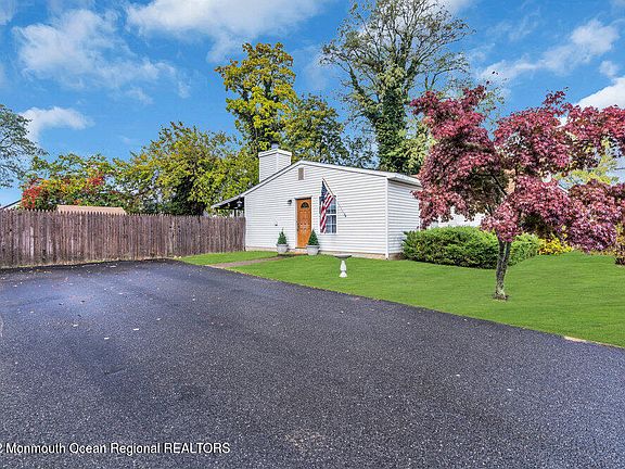 Middletown three bedroom ranch with spacious, bright family room and large backyard! Central air and wood burning fireplace. French doors lead out to a covered back porch. Plenty of room in the fenced yard with a large storage shed. Master bedroom with walk-in closet. Eat-in kitchen with stainless steel appliances, oak cabinets and access to back patio for grilling. Flex-space currently used as pantry/storage has many possibilities. Convenient laundry room access from kitchen. Full bath with tub and shower. Double wide paved driveway. Three minutes to the Bayshore beaches! Very commutable with easy access to GSP via Rt. 36, Seastreak ferry or bus. Highly rated school district and all that beautiful Monmouth County has to offer! (Grass color has been enhanced in some of the photos)
