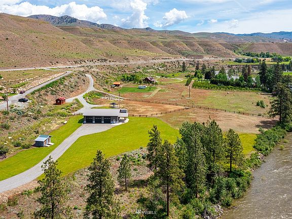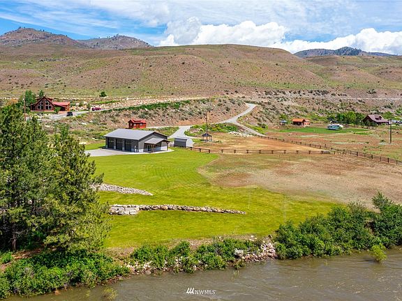 This 597 ft of Prime Low Bank Methow Riverfront is sure to impress! 3.7 park-like acres with a massive 40X60 metal sided, stick built shop w/studio. Metal roof is snap lock, no screws that loosen in time. Radiant floors in 2 zones (propane powered) & 3 electric cadet heaters for backup heat. Efficient & effective industrial ceiling fans throughout, plus attic. Wired for generator, internet & cable. Plumbed for washer & dryer. Private well & septic, auto sprinklers & RV site. The 420 sqft covered patio boasts a beautiful pine tongue & groove ceiling creating a peaceful space to enjoy nature & unwind. This is one of the best opportunities on the river for recreation, grab the rafts & fishing poles & start enjoying this summer!