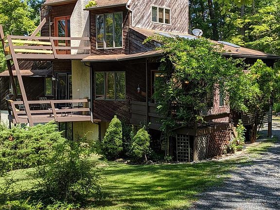 If you love nature, you'll love this secluded 2 story contemporary home on 8.39 beautiful wooded acres.As you drive down the private driveway take note of the mature trees which provide great shade in the summer and brilliant colors in the autumn. Once you arrive at the house, you'll notice that there's two decks in the front part of the home and one in the back. So no worries about where to kick back and relax since you can enjoy mother nature from the front and the back and inside and outside of the home. When you enter the home from the front side of the house, you'll walk right into the sun room. The sun room has a vaulted ceiling and 3 skylights. This room can be used as a multipurpose room; however, the current owner enjoys watching nature while working out. To the left of sun room is the great room. This room has beautiful hard wood floors with a wood burning fireplace. If the fireplace isn't enough of an escape just step outside the great room to the partially covered deck where you can sit back and enjoy the sounds of nature. Don't worry about additional art work since mother nature provides some spectacular views and colors each season for you to enjoy. By taking a few steps from either the great room or sun room you can enter the kitchen and dining area. No worries with entertaining and being away from your guest since the kitchen overlooks the great room with a spectacular view to the outside. On the main floor, you'll find the first bedroom with a full bath. Walk up the steps to the second bedroom which features a ceiling fan, wood fireplace plenty of windows and another deck off the bedroom that allows you to enjoy the park like setting. The bathroom has a stall shower, Jacuzzi, and a full size walk in closet. The washer /dryer is located in the bathroom area; however, this could be easily moved to the basement area if preferred.The unfinished partial basement provides ample extra storage with walk out exit to grade and could be finished off. The house has multi-zoned heating and air conditioning. The back entrance also has a deck where the owner does their grilling and entertaining as well. There is a carport and an oversized detached garage that is currently used as a car enthusiast workshop, but can be easily converted to and used as you like.This home does need some TLC and being sold as is, but the home and property are truly one of kind with lots of potential. So don't wait and set up your showing today.