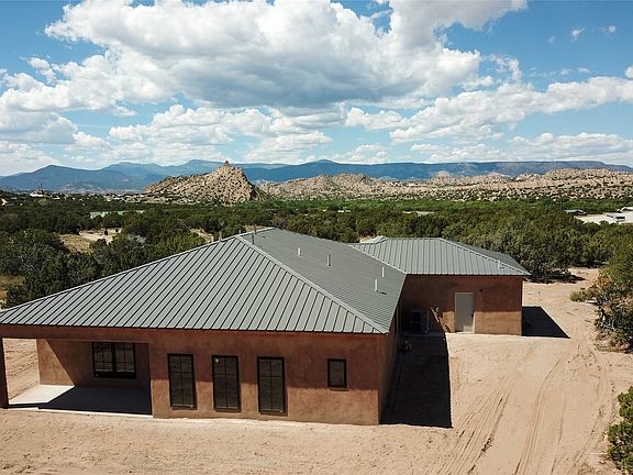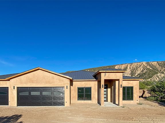 Experience modern living in this brand-new custom home set on 5 acres of sweeping New Mexico views. This sleek and stylish residence offers 2,377 sqft of thoughtfully designed space. The open-concept floor plan features high ceilings and an abundance of natural light. Blending contemporary finishes with timeless comfort. The kitchen is a showstopper, perfect for both entertaining and everyday living. The living area flows seamlessly outdoors, where panoramic skies and peaceful surroundings await. The primary suite is a private retreat with a spa-inspired bathroom, while three additional bedrooms provide flexibility for family, guests, a gym or a home office. Located in Ojo Caliente, just 30 miles from LANL and Santa Fe, this property offers the rare balance of modern convenience and rural tranquility.