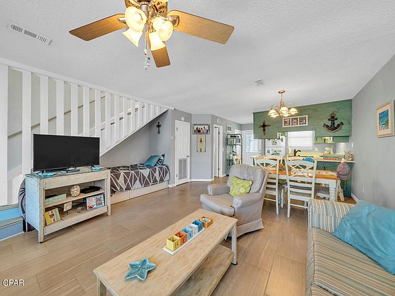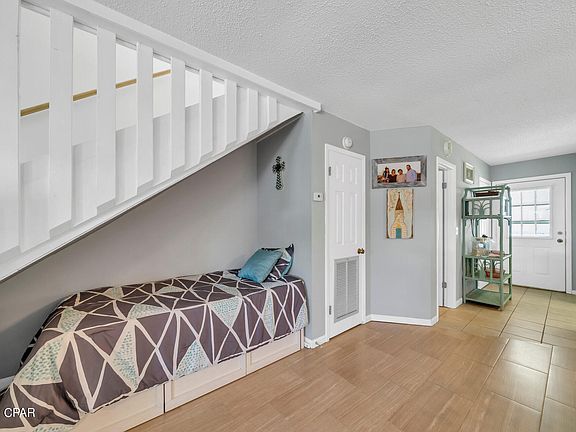 This 2 Bedroom 2 Bath End Unit Townhome is only steps away from Beach Access 76B on the desirable West End of PCB! And the Community Pool! The best of both worlds! Even has an Outdoor Shower and a patio for cookouts after a long day on the Beach! And two Outside Storage Rooms to keep all your Beach toys! The Balcony off of the Master Bedroom has been enclosed and would make a great Office space, the current owner has a spare bed in there now. The front Bedroom has it's own covered balcony, with a little bit of view of the Gulf! Mostly furnished, except 3 pcs. and personal items. Additional bed with built in storage under the stairs, for those that don't want to use the stairs! If details or dimensions are important, please verify