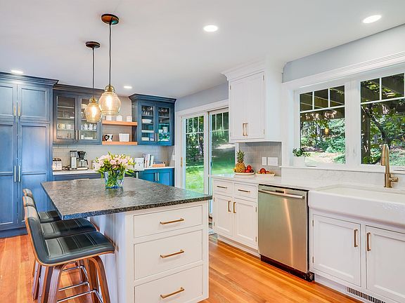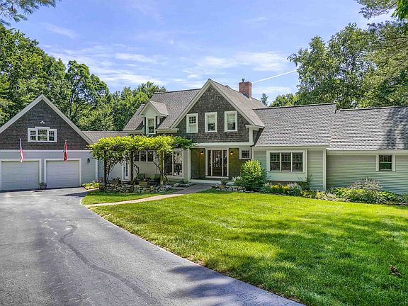 Beautiful Contemporary Cape privately situated on 2.25 acres. This property has it all, from the perfect layout, privacy, a wooded backyard, convenience to Interstate 89 and 93, as well as a short walk to a private pool, private golf course, and a short drive to all of Concord’s amenities. Upon entering the home the large windows welcome natural sunlight throughout. A brand new custom kitchen has been thoughtfully planned with an eye toward style and function. The many custom cabinets, granite countertops and chef grade appliances make this kitchen a dream. The kitchen flows naturally into a large dining area and living room making this home ideal for entertaining. The sun filled living area is the center of the home with its floor to ceiling stone fireplace. Large windows lead you out to a large mahogany deck which overlooks the serene backyard. Off the kitchen is a large 3-season sunroom, and above the garage a separate stairway leading to a finished bonus room which is currently used as a home gym but offers a variety of options. Down the hall is a true 1st floor primary retreat featuring high ceilings, a beautiful private sitting room, large walk-in closet, and a spacious full bath. The second level includes two large bedrooms and a recently updated full bath. An additional bedroom, full bath, spacious sitting area, home office and finished laundry room are found in the walkout lower level. This lower level is bright and spacious, providing plenty of space for guests