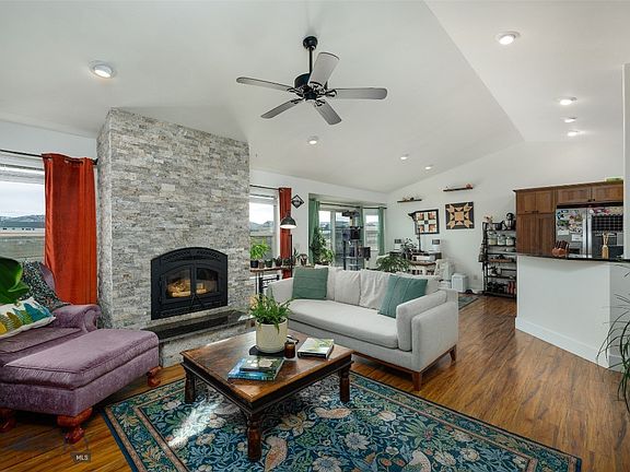 Nestled in the esteemed Westside Trails Subdivision, this pristine 3-bedroom, 2-bathroom home boasts breathtaking views of the Gallatin Valley and Bridger Mountains. Recent upgrades include efficient air conditioning and a large fence. The heart of the home is a striking floor-to-ceiling travertine wood-burning fireplace, complemented by an open-concept layout that seamlessly connects the kitchen to the living and dining areas. The master suite features a spacious en-suite and walk-in closet, with two additional bedrooms offering comfort and privacy. Situated on a generous 1+ acre lot near Wheat Montana and just 30 minutes from Bozeman via I-90, this property combines serene living with convenience.