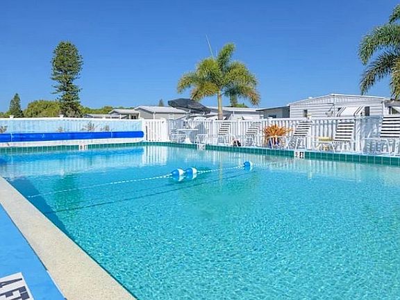 Welcome to Terra Palms trailer park! This is a beautiful rustic mobile home with 2 large bedrooms, an A/C controlled (fully screened in) front porch area, a very spacious living room AND kitchen area, and 2 full bathrooms (1 master bath). AMENITIES: •Gated community swimming pool •Shuffle board •Bocce ball •Fitness center •Pickleball court •Billiards •Clubhouse (for TP members only) •Lawn care services •Outdoor patio w/ grills and fireplace •Green spaces to sit and relax in nature Come check us out today! ***Home needs some TLC from Hurricane Milton, but is still very livable with LOTS of potential.***