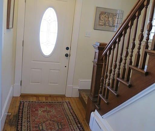 Not a drive-by! Charming farmhouse is light and bright, in a great location. Large airy kitchen has plenty of cabinets and counter space, and opens to a sunny dining room that could also be extra living space or a home office. Nice-sized living room with picture window overlooks the front porch, and a roomy covered porch/mudroom off the kitchen allows for storage of bikes, equipment, and more. Upstairs are three spacious bedrooms off a light-filled central hallway. Sweet original woodwork, wood floors throughout, newer windows, 13-year-old roof, lots of closet space, a great backyard with plenty of room for play or gardening, and first-floor laundry too! Showings begin at the open house Saturday March 24, noon to 2pm.