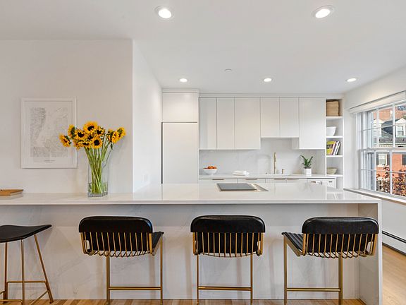 Located on one of Beacon Hill's most coveted streets, this sun-filled, one bedroom residence sits on the upper floor of the historic (1822) Marsh townhouse. A recent renovation by noted builder, NS Builders, has left no detail overlooked. The bright and modern open-plan home has three windows overlooking Chestnut St. The living room has beautiful hardwood floors, a custom marble faced fireplace flanked by built in seating that doubles as additional storage. The kitchen boasts custom cabinetry, quartz waterfall countertops, island seating and Miele appliances, including a cooktop and in unit washer/dryer. The spacious king size bedroom has custom fitted California closets, built-ins and an en-suite bath with marble tile, underfloor heating and an attractive curb-less glass shower. This home is steps to the shops of nearby Charles St, the Boston Common and the Public Garden. This building is professionally managed with an elevator and private storage in the basement and hall landing.
