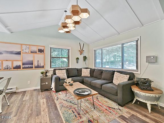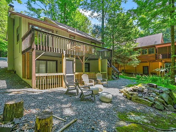 Completely remodeled home including plumbing, electric, insulation, drywall, trim, flooring, kitchen and bathrooms. This home has beautiful, modern finishes including the light fixtures, railings, tile, vanities, flooring, etc. Located in a four-season amenity filled community in the 'Lake Region of the Northern Poconos'' just two hours from the NY, NJ and Philly Areas. This main living area has vaulted ceilings a brand-new kitchen and access to the rear deck. There's three bedrooms plus a loft overlooking the living area. The lower level has a recreation room with woodstove, a bedroom and bathroom, and access to the lower-level patio and firepit. Triple split system A/C. Close proximity to walking trail and stream. Walk to Golf Course, Club House, Indoor Rec Center., Beds Description: 2+Bed1st, Beds Description: 1BedLL, Baths: 1 Bath Level 1, Baths: 1/2 Bath Lev L