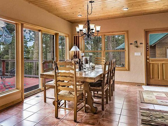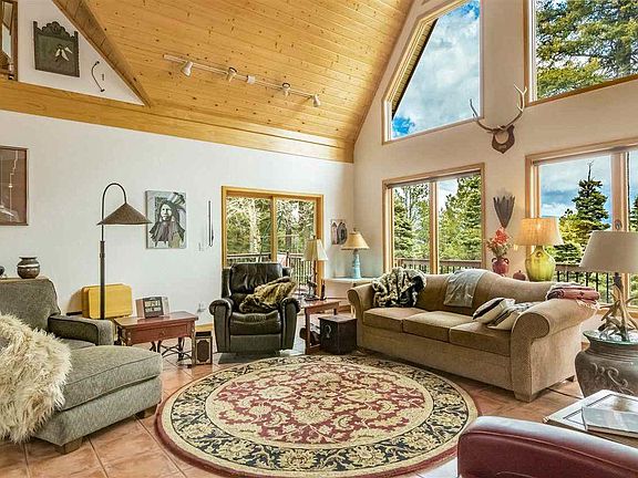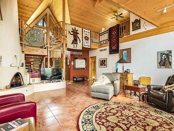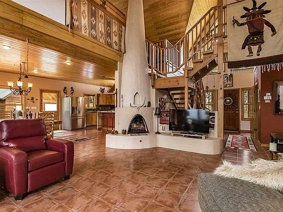 This lovingly cared for southwestern style custom home has room for family gatherings or entertaining! The large great room features a wall of windows opening to views of Angel Fire Ski and Mountain Bike trails. Those windows also let in a copious amount of warm sunlight for passive solar heating in the winter. The open living/dining/kitchen design makes for a great setting in which to enjoy family. Just outside is a large deck with sitting room and a hot tub. The great room has a kiva propane fireplace and adjoins the master bedroom on the main level. Upstairs you'll find 2 spacious loft areas, one being used as a bedroom, and one as a den/office. On the lower level there are 2 bedrooms, a Jack and Jill bath, lots of storage and a large 2 car garage with a whole house generator in case of electricity outages. The 1.66 acre lot also houses a separate 2 car garage/workshop of approximately 588 sq ft. Heat is provided with a whole house forced air propane fired system with attached humidifier. Add to it that fact that you're just 5 minutes from the market and skiing and golf and this is arguably the perfect family mountain retreat!