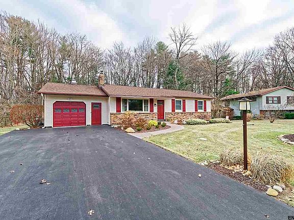 This immaculate 3 bedroom 2.5 bath ranch offers great living space. Family room with vaulted ceilings and large windows letting in natural light, dining room and living room with wood stove. Finished basement with full bathroom and has potential for a 4th bedroom. Wood floors through out. Guilderland School District.