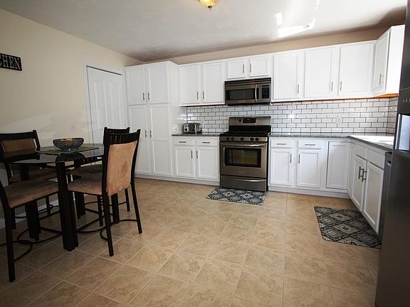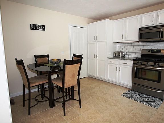Stunning 3 bedroom 2.5 bath Colonial style home with chef's kitchen! Beautiful white cabinets, granite counter, SS gas range, subway tile backsplash, disposal and tile floor! The comfortable living room is complimented by a gas fireplace and adjacent to a quieter sitting area for entertaining/reading or playroom with hardwood floor, a seperate dining room and slider to private deck overlooking flat yard.The landing offers a nice office option and upstairs the 3 bedrooms are located. The master bedroom is oversized and has a seperate area for sitting or a nursery, master bath with granite and walk in closet too! 1 car garage, vinly sided, gas heat! Room to expand in the lower walk out level
