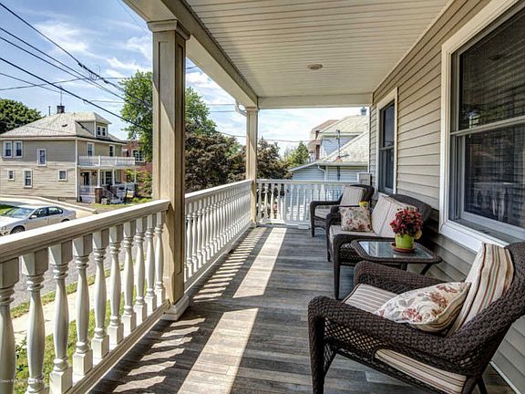 All upgraded in '05 w/ new 30' porch, 2-zone heat, A/C, 40-yr roof warranty, windows & siding, crown molding. LG FR w/custom built-in cabinets. DR has direct access to the LG maintenance-free deck thr Anderson French sliding doors, over look private backyard. Finished walk-out bsm w/custom solid mahogany wet bar, 12' sliding glass drs to sunken brick paver patio. Master suite w/WIC and a master bath w/double sink, enlarged shower with inlaid stale tile, granite sitting area & 2-person Jacuzzi tub & TV. The main hallway upstairs is accented with raised panel wainscoting. Walk-up attic for easy storage. 2 brand new hot water boilers. The entire house serves as a showcase for customized crown moldings and detailed trim work. Near trans, shopping, house of worship, schools & much more. 15’ X 30’ above ground pool opened 2019 . Home sits on a double lot with 2 separate driveways with one garage in the back . Brand New fence installed 2020 . Probably the biggest house in the neighborhood.