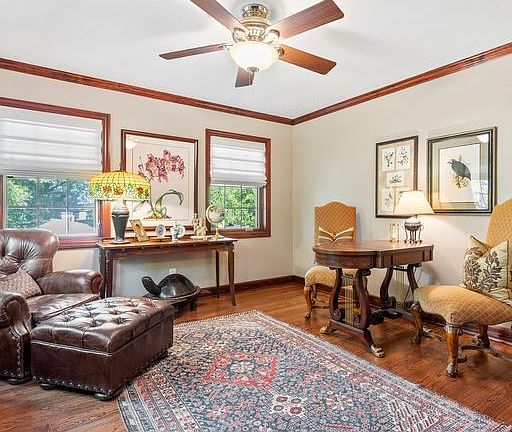 This regal Colonial is very special. Brazilian HW floors from foyer to kitchen. The large gourmet kitchen boasts mica stone pendant lighting supersized counter, Blue Star 6 burner gas stove with grill and heavy duty range hood, Vino wine refrigerator for 112 bottles, 2 sided brick fireplace shared with family room on the other side. There is a 1st fl laundry with new w/d, and a newer half bath. A 1st fl library/den makes for a relaxing get away. The living rm allows for more formal entertaining. The Primary bedroom boasts 3 closets including one WI closet. The primary ensuite is only 2 yrs old and features marble and porcelain fixtures WI large tile shower (40"x87") lighting feature on rain shower , Toto bidet /commode. dual vanity with quartz top, and touch light medicine cabinet .The 2nd bath has a Japanese style hammered copper soaking tub backed by an Italian marble accent wall . The 4 car garage and over 1 acre of land . HSA Home Warranty