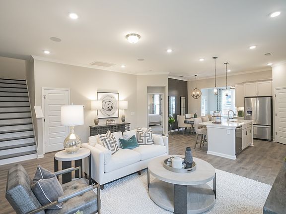 Gorgeous 3 BDR and 3 full bathrooms with morning/sunroom, 10' ceilings and hardwood floors, quarts or granite, tiled shower. Two bedrooms down! Amazing pool, walking trail, fitness center, pocket parks all coming soon. This is one of the largest lots in the villas. The exterior and yard are maintained by HOA . Lots of extra trim and upgraded lighting.