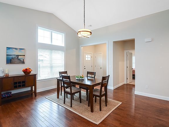 Why wait for expensive, new construction when you can buy this almost NEW, gorgeous home? Your walkway leads to the front door & inside a spacious foyer welcomes you! The open floorplan with 9 foot ceilings WOWS! Vaulted dining room ceiling & plenty of room for holiday meals. The cabinet packed kitchen has upgraded cabinets, granite, S/S appliances (a GAS stove) & a large breakfast bar. A walk-in pantry is adjacent & the laundry/mudroom has space for storage, coats, etc. The living room has a gas fireplace & makes for easy entertaining with sight lines to the kitchen & dining room. The sunroom brings in plenty of daylight & opens to the patio with views of the open space.The primary bedroom has a walk-in closet & full bath with double vanity & shower. A 2nd bedroom is on the opposite side of the unit with access to the 2nd full bath. Extra storage is easily accessed by the walkup attic. Finish with a 2 car garage, nearby walking trails, & clubhouse Be HOME for the HOLIDAYS!!