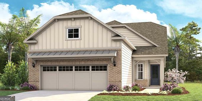 This stunning 2 Bedroom, Study, 2 Bath Caroline plan offers a grand quartz island in the kitchen. The Owner's Suite impresses with a double Walk-in Closet and Owner's Bath features an oversized, fully tiled walk-in shower. Complemented by a Flex with French glass doors, an enlarged pantry, and a 4' Garage extension this Caroline model is architecturally designed for functionality. Contact your New Home Guide at Cresswind at Spring Haven, a new 55+ community with convenient access to downtown Newnan's charming shops and restaurants.