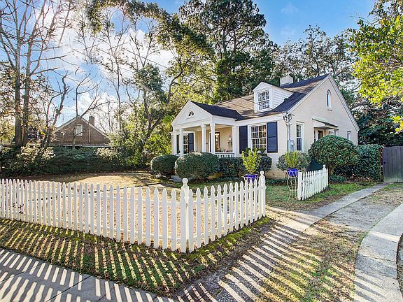Situated on a non-through, quiet street in the back of the Byrnes Downs neighborhood - and less than 10 minutes from the center of downtown Charleston - sits 13 Colleton Drive. This home was originally built in 1945 and its historical integrity has been left intact while experiencing beautiful modern upgrades. From the street, the charming cottage-style brick structure is painted a calming shade of pale yellow and includes a white picket fence surrounding the front yard (the entire property is fenced). As you approach the front porch, the mature and private landscaping gives way to the front porch (large enough for sitting furniture and planters) with its ceiling painted haint blue. One of the most beautiful touches to the home are its original wood/glass and solid wood front doors.The entry immediately opens to an airy living room connected to the dining room. The dining room has been hand-painted with limewash and includes a custom-made plaster ceiling medallion. The dining room flows to the recently re-designed kitchen that includes marble counters, stainless steel appliances (including a Bertazonni range and Bosch dishwasher), custom tile work, and custom soft-close cabinets. The kitchen is flooded with light from the side door that leads to the paved exterior patio with mature trees and foliage. Also located on the main floor are three bedrooms; one of which is currently used as a laundry room. Additionally, there is a full bath downstairs that includes the original cast iron bathtub and the original basket-weave black and white tile. Throughout the main floor, the original oak floors have been impeccably maintained. The second floor has been finished and includes a large open space for work and exercise or easily a large primary bedroom, and features a full bathroom. Additionally, there are two expansive storage areas; both with electricity. Additional features include: recently encapsulated crawlspace with French drain and dehumidifier by Mount Valley Foundation Services (with transferable warranty), new subfloors and new floor joists in downstairs bedroom by Mount Valley Foundation Services, new Carrier HVAC system, new Honeywell thermostat, new water heater, Google Nest Protect smoke & carbon monoxide detectors, two exterior motion light detectors, and LG washer/dryer, and Window World double-hung windows. 13 Colleton Drive sits one block away from the West Ashley Greenway, a popular 8 mile hiking and biking trail. Easy walking access to Harris Teeter, Whole Foods, and Avondale & South Windermere restaurants and stores. Come check out this gorgeous property today!