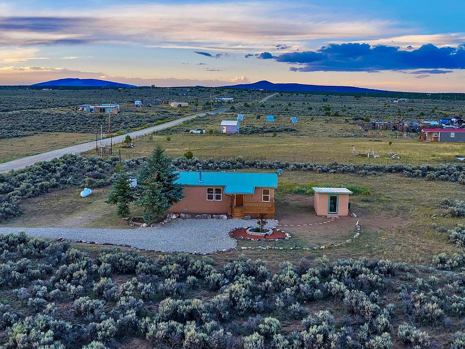 The Perfect Home in the Taos High Desert ~ Set on over two high desert acres with absolutely stunning views of the Sangre de Cristo Mountains, you will discover this fully renovated home ready for you to begin your next adventure. Inside and out, almost every single detail of the home has been thoughtfully upgraded to create a comfortable and inspiring living space. Step inside the beautifully transformed interior with brand new doors and upgraded LED lighting which help brighten up the space when the sun isn't shining through the newly installed thermopane windows. The kitchen dazzles with new stainless steel appliances, new cabinets and countertops, and a farmhouse sink, complete with an ice maker and garbage disposal. The bathrooms have been revitalized with new tile, cabinetry, and modern fixtures, while new carpet can be found in the bedrooms, and fresh paint on all the walls. The updates continue outside, where the home features brand-new Milgard wood siding and stucco, a 26-gauge steel roof with a gutter system, and a rebuilt deck. A fresh layer of driveway gravel is the cherry on top to welcome you home. A newly installed cistern pump and pressure tank ensure reliable water access, and the detached 10x14 insulated and plastered storage building with a steel roof, and insulated has endless potential for possibly a workshop or second living space down the road. Some photos have been virtually staged to spark creativity. This is a must see, and must own residence for a stellar deal.