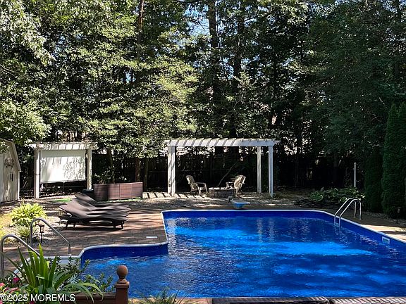 Welcome home! This tree lined property is a stunning private oasis with over an acre of property. The backyard will make you feel like your on vacation everyday. Fire pit ,movie screen, Large L shaped pool, great deck for entertaining. Nestled in a serene cul-de-sac. The interior is stunning with 4 bedrooms, 2 ½ bath, beautifully designed with a chefs kitchen, large master bedroom with a walk-in closet and spa like ensuite. The 4th bedroom is currently being utilized as a home office with plenty of space and built ins to keep you stylishly organized and efficient . Minutes from the bay , ocean beaches, and Garden State parkway. This peaceful paradise is an entertainer's dream.
