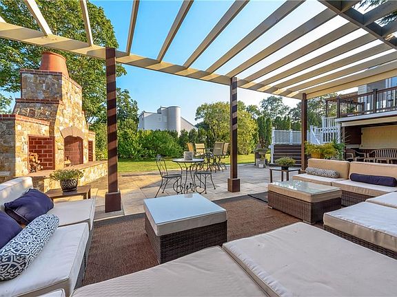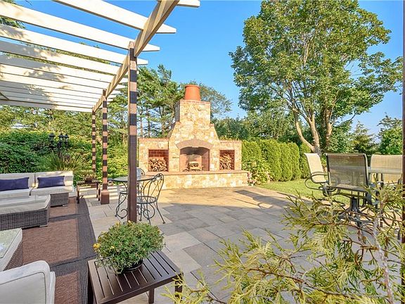 Coveted Castle Hill location. Polished, crisp 4 bedroom, 3 bathroom overlooking Newport Country Club out to Brenton Reef. Lush, landscaped corner lot, with fabulous outdoor living spaces. Massive 1600 square foot stone patio anchored by impressive, custom-built Tuscan triple bay fireplace, with plush double seating under pergola, large dining areas with a collection of active decks and balconies. Enjoy ocean views over the secluded patio. Over a thousand square foot open, sun-filled great room - living, dining, kitchen and step-out decks, ample entertaining spaces with distant ocean views. Deeded beach rights for you and your guests; a short stroll to the waters edge overlooking Jamestown and Beavertail light. Multiple bedrooms on two floors comprising five bedrooms, of which two are master suites, three full bathrooms. Secluded guest quarters feature fireplaced living room, bedroom with ensuite bathroom and private media retreat. Landscaped grounds of mature trees reveal wonderful canopies of shade bordered by tall privacy hedge - ample entertaining spaces are hidden, set among garden beds toward the open sports lawn. The sound of the ocean is a constant companion and the beautiful, private sandy beach sets this home apart.
