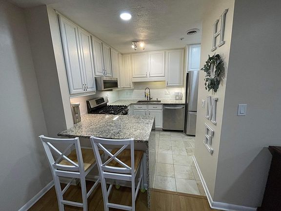 Stunningly renovated, 1st floor unit near beautiful West Concord offers a carefree lifestyle in a prime location. This updated condo features new modern flooring. The kitchen was updated with top-of-the-line stainless steel appliances, tile backsplash and sleek granite countertops. Enjoy casual meals from the breakfast bar or more formal entertaining in the dining area. A glass sliding door leads to your private patio for summer picnics and lunches. The spacious living room offers a wood-burning fireplace. The generous master bedroom is complimented with two large closets that are closed by mirrored doors. The updated full master bath features tiled flooring, tub with tiled surround and modern vanity. Additionally, generously sized bedroom/office and second full bath. In-unit front loading laundry machines with built in storage. HOA fees for this condominium INCLUDE heat, cold/hot water, pool, tennis court, clubhouse, garbage pickup, landscaping, community garden, snow removal.