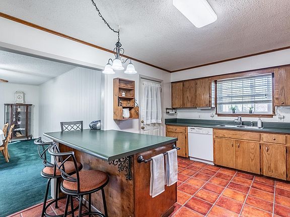 Welcome to this charming 4-bedroom, 3-bathroom home. On the main level, you'll find a cozy formal living room along with three bedrooms and two baths, providing ample space for relaxation and privacy. The kitchen is spacious and inviting, flowing seamlessly into a large formal dining room, perfect for hosting gatherings and meals with loved ones. Venturing downstairs, you'll discover a generously sized great room featuring a wood-burning stove that efficiently heats the entire lower level, creating a warm and inviting atmosphere. Additionally, there's a sizable storage area, cleverly designed to double as a storm shelter, offering both practicality and peace of mind during inclement weather. Downstairs also boasts a fourth bedroom, complete with its own full bath, ideal for guests or as a private retreat. Adjacent to the bedroom is a versatile office space, perfect for remote work or pursuing hobbies. Stepping outside, you'll be greeted by a beautifully landscaped backyard complete with a deck and patio, providing the perfect setting for outdoor relaxation and entertaining.