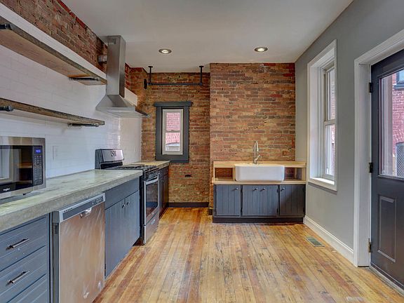 Detached home with off-street parking in the city is renovated in today's highly sought after urban appeal. Exposed brick, distressed softwood floors, hand-hewn accent wall, poured concrete countertops, farmhouse sink in hand crafted cabinet base and shaker style cabinetry with a stainless steel appliance package in the kitchen. Replacement windows, new gas forced air heat and AC, no-maintenance courtyard off of kitchen and two off-street parking spaces. Jump on this one now because with the popularity of this area increasing, you'll be making a good investment. Move in and watch the values around you soar!