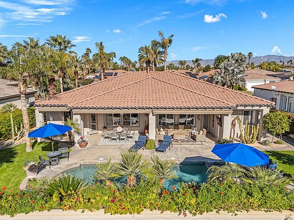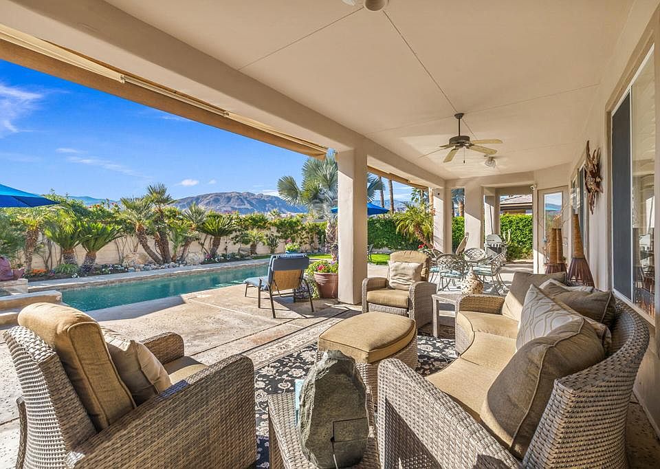 Welcome to 13 Corte Del Sol -at time of listing the LOWEST PRICE and BEST VALUE available in La Terraza Monterey Estates. Conveniently located on the edge of Rancho Mirage and Palm Desert, this stunning home offers the perfect blend of comfort, style, and outdoor living, making it an entertainer's dream. Great curb appeal! Cozy gated courtyard with sitting area. Formal foyer entry,Step inside to discover a light-filled, open-concept layout with soaring ceilings and elegant finishes throughout. The heart of the home is the Great Room with updated chef's kitchen, boasting sleek marble countertops, top-of-the-line appliances, custom cabinetry and ample storage space--perfect for preparing everything from casual breakfasts to gourmet dinners. Butler kitchen and walk in pantry between Kitchen and formal Dining Room. The adjacent living and dining areas flow seamlessly, creating an inviting space for gatherings or quiet evenings.Greatroom has custom built ins & impressive stack stone gas fireplace with raised hearth, perfect for extra seating while entertaining. French door access to outdoor oasis with panoramic southern and western mountain views. Covered patio with enough room for outdoor sitting and dining areas, complete with mounted outdoor television. Pebble tech pool and spa with water feature.The primary suite is a true retreat, complete with a spa-like ensuite bath, over size shower and a generous walk-in closet with custom organization system and separate water closet. Direct access to the back yard. Guest bedroom is spacious and 3rd Bedroom ( doors removed and used as a den , Seller will install prior to close of escrow if desired by Buyer). French door access to front courtyard.Home is in immaculate condition and has been exclusively used as a second home. Oversize porcelain tile throughout, double car garage with epoxy floors and an additional golf cart or storage area. Note primary ensuite, has original soaking tub and shower- at time of reno, owners were unsure if they wanted an oversized steam shower or separate stand alone tub and shower. There is enough tile for you for consistent flooring to renovate how you see fit. Dual AC system installed 2022, indoor/ outdoor speaker system.Located on a cul-de-sac, this home offers easy access to top-rated schools, shopping, dining, and outdoor recreation. Whether you're looking for a forever home or a luxurious escape, this property has it all.Come experience the magic for yoursel