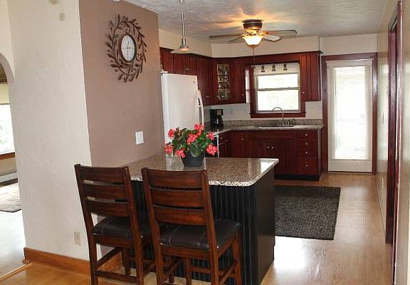 - Features: Appliances/Refrigerator, Appliances/Microwave, Appliances/Range / Oven, Exterior Description/Vinyl Siding, Garage Count/2 Car Garage, Garage Description/Detached Garage, Lot Size/Under 1/2 Acre, Water/City Water, Sewer/Public, Cooling/No A/C, Flooring/Linoleum, Flooring/Hardwood, Heating Type/Baseboard, Basement/Full, Age/Over 50 Years Old, Heating - Fuel Type/Propane, Exterior Living Space/Deck, Roof/Metal Roof, Exterior Living Space/Enclosed Porch