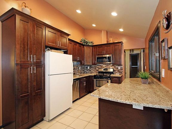 This remodeled home embodies a lifestyle of comfort and stylish living. The easy floor plan is complimented by the many renovations and upgrades throughout. Gourmet kitchen is the heart of the home featuring vaulted ceiling, custom cabinets, granite countertops and stainless steel appliances. On those cold winter nights enjoy family meals by the wood burning stove in your formal dining room. The Fully finished basement with separate office/bedroom and new full bath is a perfect addition to this home. Enjoy the outdoors by the Fire pit or relax in the 3 season room accessed from kitchen and overlooks the large fenced yard with storage shed. Surrounded by tall trees is your private retreat and can accommodate a large pool. Perfectly positioned for NYC commuter walking distance to Train
