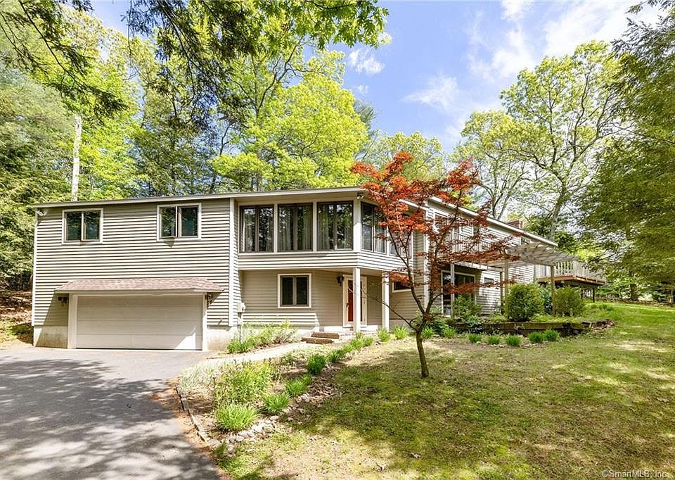 Wonderful one of a kind 4 bedroom, 2 1/2 bath Contemporary situated on .69 peaceful acres on cul-de-sac st minutes to Granby center This impressive custom home features lots of natural light, an open floor plan, a sun-filled kitchen opening to the great room with fireplace and vaulted ceiling, dining area with slider leading to wrap around deck overlooking the private backyard and a finished walk-out lower level add 713 sq ft including the 22 x 21 family room. The primary bedroom suite offers a remodeled full bath with tiled shower and a walk-in closet. There are 3 additional bedrooms with new carpeting. There is a 2 car garage, mudroom area, laundry room with sink, hardwood floors, newer windows except the great room, newer furnace, roof and well pump. This fabulous location offers easy access to Bradley International Airport, hiking and bike trails, Copper Hill golf course, YMCA, parks, schools and is convenient to I-91, Hartford and Springfield. You won't want to miss this beauty Nothing to do but move in and enjoy