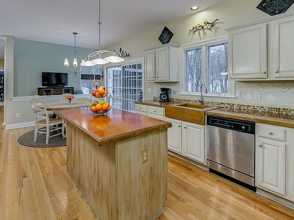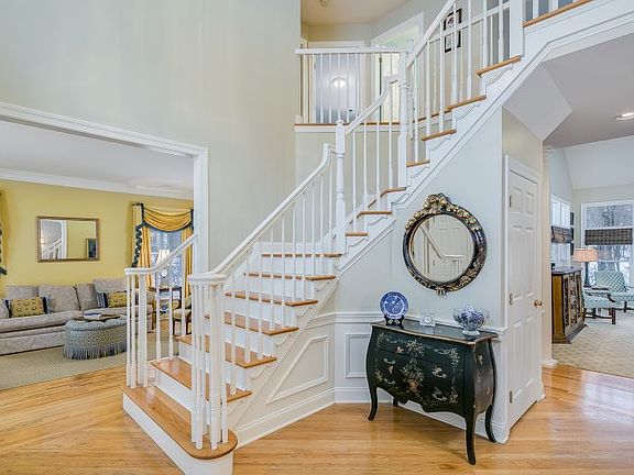 Pride of ownership is evident throughout this classic center hall colonial in sought after Cul-de-sac neighborhood. Ready to move in and enjoy. Custom millwork and columns add architectural interest. Crown moldings and wainscoting carry from the foyer into the formal DR. French doors lead from the formal LR to the office. The 2-story FR is open to the kitchen and offers sliders to a large deck and floor to ceiling fireplace. The updated kitchen has newer stainless steel appliances and custom concrete countertops and molded sink with apron front. Grand master bedroom with tray ceiling,columned sitting room and extensive master bath/closet area. Three additional bedrooms and updated hall bath on 2nd floor. Fully finished WO basement with unique pub room,rec and exercise areas. Invis fence & generator conection.