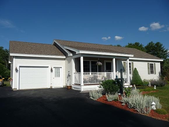 This quality built home is not your average ranch. Very sunny setting brings tons of light into all rooms of this home. Very handsome kitchen with ample amounts of maple cabinets, large central island, upgraded stainless appliances including a double oven these owners have loved. Deep pantry closet. Open concept to the dining area and living room, tall cathedral ceilings and hardwood flooring. Hardwood floors continue down the hall to carpeted bedrooms. Full tiled bath off hall. Generous master bedroom with double closets and a large tiled 3/4 bath is at the back of the home and 2 other bedrooms to the front. Slider off dining area goes out to a nice deck looking over a beautiful large level back yard. Cute partial farmers porch. Tasteful and well thought out landscaping surrounds this beautiful home. High end washer and dryer included. Very handy location just 15 minutes to Concord 30 minutes to Manchester. Close to I93 Exit 20 and all its shopping. One level beauty. Don't wait!