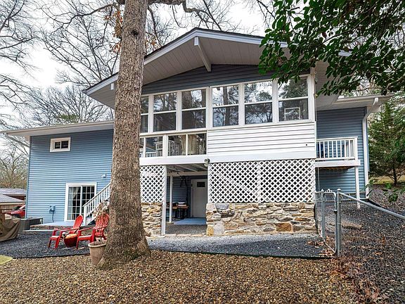 This is a one-of-a-kind home. So many upgrades. New flat driveway, Beautiful wood floors in living room, hallway and bedrooms in upper level. Updated Kitchen with beautiful granite counter tops and breakfast bar. All kitchen appliances remain with house. Two bedrooms, two bathrooms and utility room upper level. Guest bedroom has armoire as closet. Arkansas room is perfect for relaxing, watching tv or observing the bird sanctuary in the back yard. Downstairs offers a 3rd bedroom/office with full bath. Large crawl space includes a workshop and storage area with overhead door access. There is also a safe room with lighting. Outside the workshop area is a covered patio space with electricity and shop sink. It makes for a great place to garden. Fenced back yard with common area beyond. There are many unique features to this house, you just need to see it. SEE AGENT REMARKS.