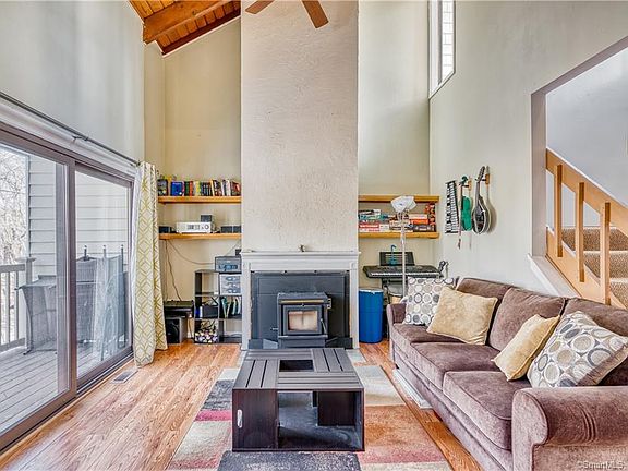 Lovely bright and open condo located in Cheshire! This spacious unit boasts 3 bedrooms and 1 and a half bathrooms. The sizable kitchen opens into a large living room/dining room, ideal for entertaining family and friends. Living room features cathedral ceilings and a fireplace, perfect for enjoying on a cold winter's evening! Sliders from the living room lead to the private back deck, a wonderful spot for enjoying morning coffee or unwinding after a long day at work! Flooring on second level is all updated and both bathrooms have been renovated- this unit is truly move in ready. Bonus finished space in the basement offers so many options- a family room, play room, or home gym. HOA fees include tennis, swimming pool, playground, maintenance, snow removal, and trash pickup. It's worry free living with a variety of amenities! Carport for ease of parking. Convenient to shopping and dining in Cheshire, with easy access to I-84 for easy commuting.