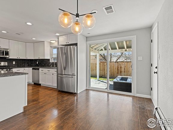 Beautifully remodeled old town home. Don't miss this spacious 4 bed 3 bath tri-level home with an easy to maintain and great for entertaining yard. The main level offers an open floor plan including a spacious kitchen with island seating, granite counters, stainless steel appliances, gas range and new soft close cabinets along with a large dining area, and size able living room. The upstairs offers a Spacious master and en suite bath along with two other bedrooms and bathroom. The bottom level houses another large bedroom, expansive family room accented by a beetle kill wall and a wood burning fireplace. This palatial house continues with 2 non conforming bedrooms in the basement which the current owners use as a gym and home office. The garage is a large single car with ample room for storage and/or shop space. The beautiful covered patio with natural gas fire pit will encourage you to entertain or watch your kids play while you sit in the comfort of a warm fire.