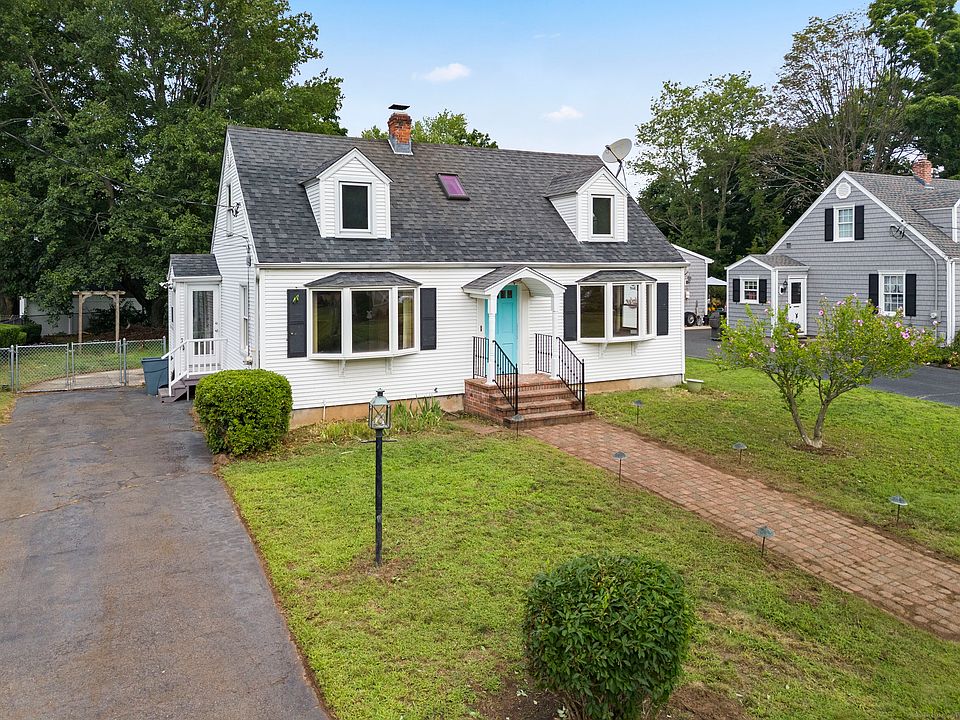 Welcome to your charming 2-bedroom, 2.5-bath Cape Cod-style home, situated on a level, fenced-in lot within a highly desirable and secluded neighborhood. This residence boasts a large open floor plan, creating an inviting and spacious atmosphere. The living room, adorned with a skylight, floods the space with natural light, enhancing the warmth of the hardwood floors that flow throughout the home. The kitchen is a chef's delight, featuring a built-in hutch and stainless steel appliances, seamlessly connecting to the dining room, which is highlighted by a picturesque bay window. The main level includes a luxurious full bath with a Jacuzzi tub, perfect for unwinding, and an additional half bath for convenience. At the back of the house, a heated sunroom with an abundance of windows offers a tranquil space to relax, complete with an attached bathroom for added comfort. Upstairs, you will find two well-appointed bedrooms and a full bath, providing privacy and comfort. The lower level houses a versatile rec room, ideal for entertainment or a home gym. Originally designed with three bedrooms, the wall was removed to expand the living room, but it can easily be converted back to its original layout if desired. The home features a 30-year roof, new central air conditioning, and new windows on the upper level, ensuring modern comfort and efficiency. Nestled in a quiet neighborhood, this property is conveniently located close to I-95 and shopping centers, offering both tranquility and accessibility. This delightful Cape Cod home perfectly balances traditional charm with modern amenities, making it an ideal choice for those seeking a serene and convenient lifestyle.