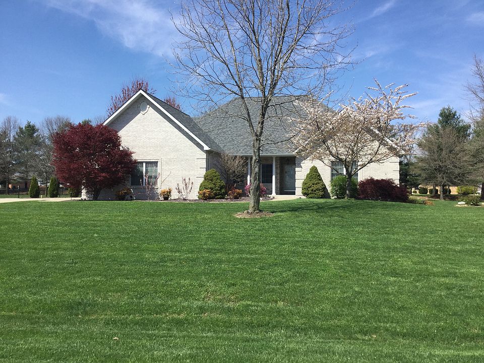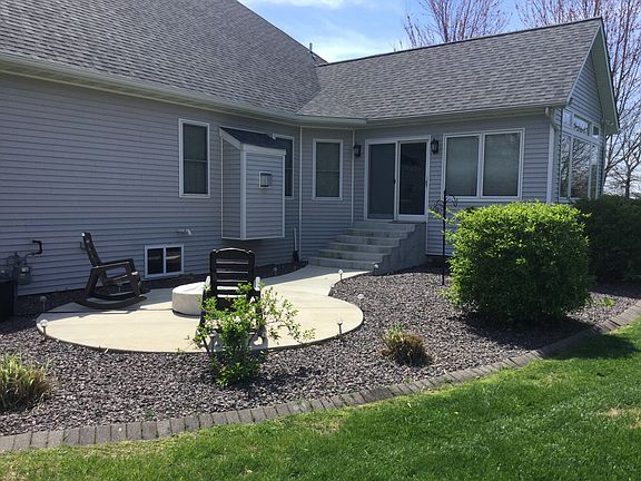 This beautiful 4 bedroom/ 3 full bath home w/full finished basement & 2 car attached garage and 3 car fully insulated detached garage new 2015 sets on 2 meticulously landscaped acres with beautiful fenced in backyard! All bedrooms have walk-in closet's. 9' ceilings. Great sunroom loaded with many large windows and a sliding door that leads to new patio and fire pit area. Finished LL features kitchen with microwave and refrigerator, family game room, bonus room currently used as a fifth bedroom with closet and window (no egress window). Main floor utility room. Living room features gas fireplace. Kitchen features maple cabinets and granite countertops with breakfast bar. Appliances stay. Conveniently located to I-70. Highland school district.