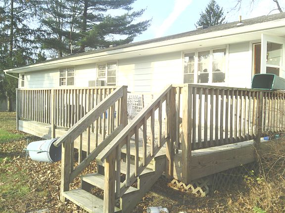 Ranch home with open floor-hardwood floors in LR, DR, hallway & one BR. Carpet in master. 1 full bath with dual sink vanity. Newer windows in Master BR & LR. Kitchen has wall oven & see-red electric cooktop stove. Deck off kitchen. Brick fireplace in LR & one in basement partially finished room. Quiet street; amenable neighborhood; nice yard. Attached garage. Easy access to Routes 31, 78/22; near 513, 20 min to 287. Ice cream/convenience store within walking distance. Train station in town; school bus stops nearby.