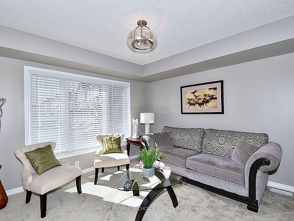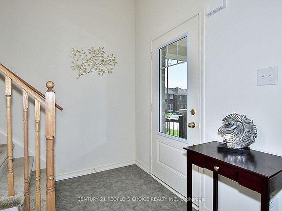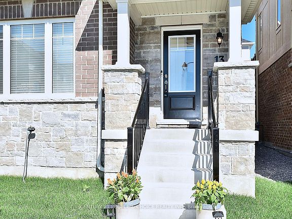 Welcome to 13 Devineridge Avenue in Ajax. An ideal first home for young families seeking great schools and a vibrant community in Durham Region. Just a 2-minute walk from Viola Desmond Public School, this 3-bedroom, 3-bath detached brick home offers modern living with a spacious open-concept layout, cozy gas fireplace, and a gourmet kitchen featuring quartz countertops, stainless steel appliances, and a walk-out balcony perfect for morning chai or evening BBQs.Smart upgrades include stackable laundry on the top floor, a Wi-Fi thermostat, NEST doorbell camera, and a striking 16-foot entry chandelier. The finished family room and double garage with basement access offer in-law suite potential. Located near the Audley Recreation Centre and major highways (401, 412, 407), this home combines convenience, comfort, and long-term value especially with the nearby Amazon facility.