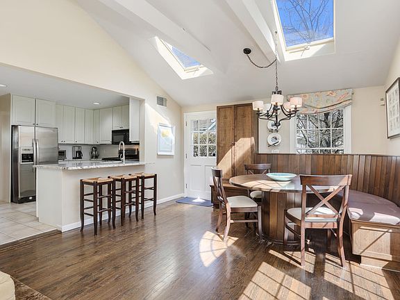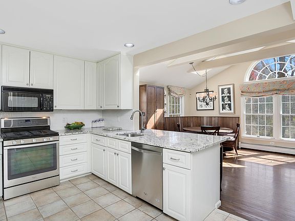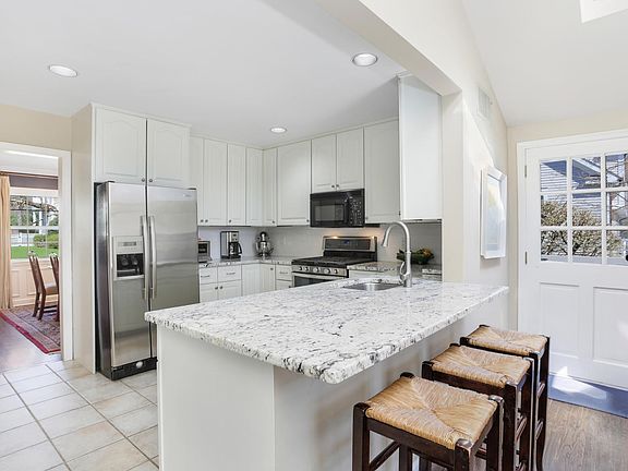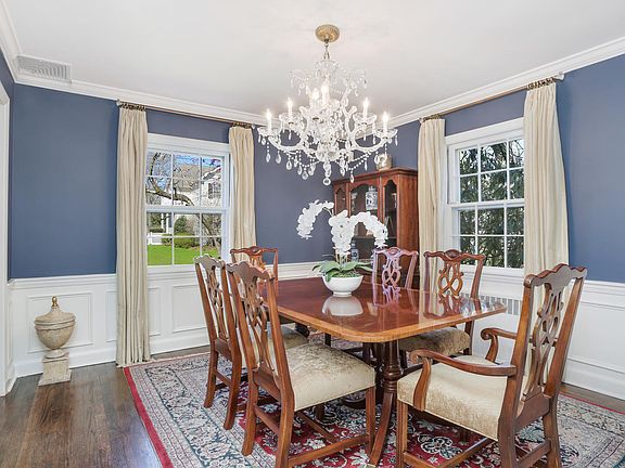 This updated three-bedroom Cape boasts exceptional value set atop a manicured lot on a quiet cul-de-sac within walking distance to trains and schools. The sundrenched interior reveals exquisite architectural details, skylights and hardwood floors. The center hall entry leads into both the gracious living room, enhanced by three exposures and a fireplace; and into the formal dining room with raised paneled wainscoting. The granite-clad kitchen opens into the breakfast and family rooms with a vaulted ceiling, built-in banquette and Palladian window. The second floor offers three comfortable bedrooms and hall bath. The lower level is comprised of a playroom with bookcases; laundry; attached one-car garage with storage and access to backyard and patio.