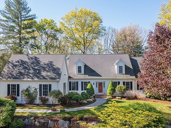 Have you been searching for an private, peaceful, oasis minutes to Boston, look no further. This gorgeous 4.5 acre waterfront estate on a cul-de-sac has it all. From the beautiful pond, to the private yard with a large garden, shed, a play/tree house you will be instantly at home. This 5 bedroom 3.5 bath stunning property has a lovely 2 story living room with a floor to ceiling fireplace and a wall of windows letting beautiful light and water views. Open eat-in kitchen, formal dining room. Surround Sound. Two story foyer, stunning oversized first floor primary suite with vaulted ceilings, walk in closet, full bathroom, large tile shower. Office or 5th br on first floor. Upstairs you will find 3 more bedrooms, a bonus game/au-pair/family room, updated rugs, newly renovated bathroom. The lower walk out level has in law potential, full bath, laundry room, living and bonus rooms, plenty of storage. Enjoy views of the pond from the back deck. Radiant floor heat on 1st floor.