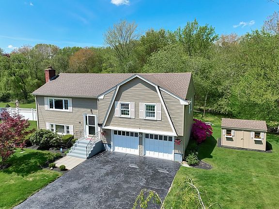Wonderful bright & updated 3 brm, 3 full bth Split level w/2 car gar on gorgeous half acre+ lot at the end of a cul de sac in wonderful location! Nothing to do but move in! Freshly painted throughout & newly refinished hardwood flrs on main level! Lovely, bright living rm w/picture window opens to formal dining rm w/slider to 20x12 deck w/amazing serene views! Updated white eat in kit w/recessed Lts, stainless steel appliances, new Luxury vinyl flr & new Quartz counters! Lg master suite w/walk in closet & updated full bth! 2 additional bedrooms w/dbl closets & overhead lighting! Updated 2nd full bth w/spa tub! Gorgeous walk out lower level w/fireplaced family rm w/built ins, picture window, recessed Lts, full bth & door to 11x20 patio! Recently painted oversized 2 car gar w/lg laundry rm w/utility sink! Gorgeous private backyard w/firepit! Gas heat & Central Air! Gas hot water heater Feb 2024 & brand new Architectural roof May of 2024 & More! Wonderful location, close to everything