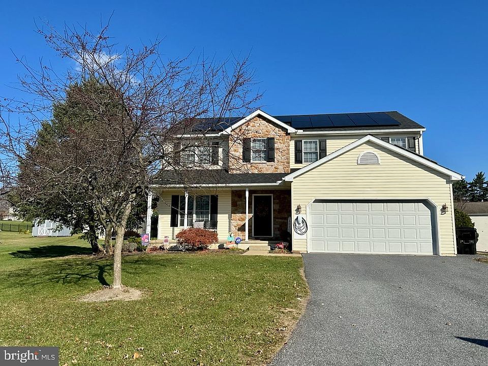Gorgeous home in desirable Wheatland Manor Development centered on a cul-de-sac. Main floor with family room, eat-in kitchen with KitchenAid appliances and breakfast nook, dining room and half bath. Second floor with 4 bedrooms and two updated full baths featuring tiled floors, new vanities and quartz counters. Separate laundry room on second floor with ceramic flooring and wall cabinets. Finished lower level adds an additional 595 square feet of living. The back yard offers a Trex deck and shed with new roof. Additional updates include whole house generator, solar electric generation system which is owned and the remainder 30 yr warranty is conveyed to the new owner. New roof in 2022, new on-demand hot water heater, energy efficient patio sliding door with blinds, new energy efficient kitchen window, and more! This one won't be around long!