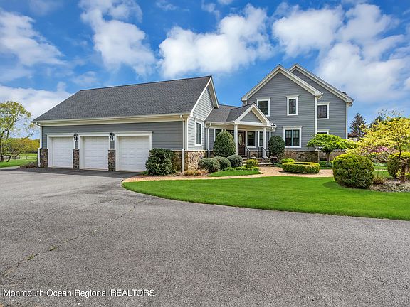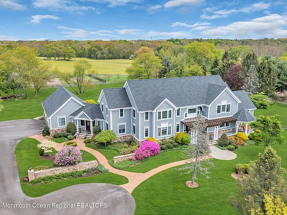 House Lot 10.11 land Lot 10.14. This home welcomes you with a magnificent two story, light drenched foyer, boasting a grand staircase. The main level features an amazing opportunity for any style of entertaining with architecture and details that exude both elegance and warmth in every room. You will also find your dream kitchen, which overlooks the most tranquil view of your property. Featuring custom cabinets, sub zero refrigerator, viking double oven and cooktop, and granite countertops. Included in the main level you will find an in law suite complete with a large bedroom/ living area, full bathroom and large walk in closet. Great room featuring stunning coffered ceilings and a gas fireplace. Off the kitchen you will find a full walk in pantry, private office, mud room/ laundry room area with its own separate entrance, half bathroom for guests and two doors that lead to the majestic backyard. The 40x20 in-ground pool just had a brand new liner put in at the end of last season and is completely fenced in and beautifully landscaped. The scenic views from the backyard to your farmland will take your breath away. The patio is flagstone and brick, lined with meticulous landscaping, overlooking your private estate. Looking toward the custom built 3 level barn, you will find apple trees, pear trees, and a pergola with grapevine trellis. It's the most beautiful place to be during any season. Living in Colts Neck offers close proximity to beautiful beaches, top rated golf courses, parks & NYC transportation. Call for your private tour today.
