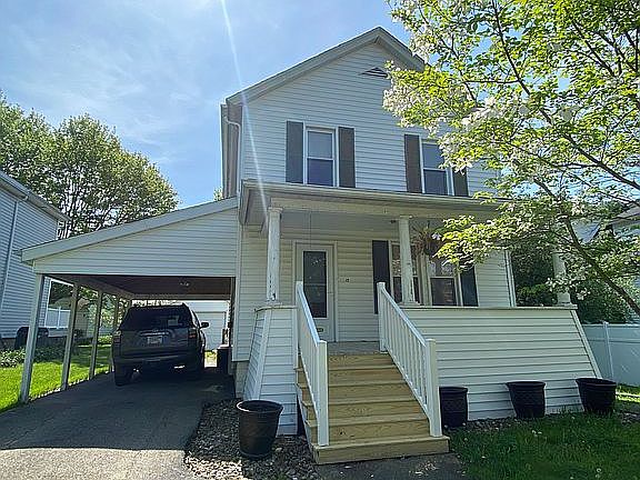 A sweet 1-2 person home perfect for living a small town lifestyle or for beginning a family. Located downtown and a few minutes from main street, it’s easy to walk around and enjoy the community. During the school year, talk a walk down the street and you’ll reach the small town elementary school. With the State University close by, commute to work or class by foot. This home has newly placed laminate flooring downstairs, refinished stairs and laminate flooring upstairs. Stair access to an unfinished basement with washer and dryer and shelving. An attached carport is convenient for those snowy and rainy days and a detached garage makes storing lawn equipment easy. A beautiful apple tree makes for gorgeous spring blooms and bears many apple for baking. Enjoy the outdoor air while sitting on the back porch. Easy access from the sliding doors makes for a great grilled meal outside! This adorable house is a wonderful location to call home.