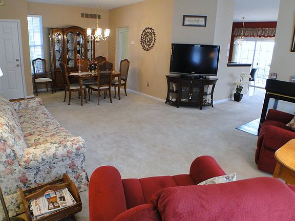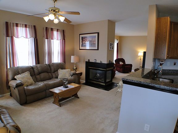 Move in your furniture, Unpack and Relax! Nothing needs to be done in this beautiful end unit carriage house in Fox Hill Farm. Eat in kitchen w/ hardwood floors, just updated with new granite countertops, under mount sink, stainless steel convection oven with five burner stove. Sliders onto cozy screened in porch. The family room off the kitchen with double sided fireplace opens into the formal living room/dining room combo making it a wonderful place to entertain. The Master Suite is complete with a large walk in closet, whirlpool tub, and shower. Custom Hunter Douglas blinds throughout. House has full basement and garage. Beautiful surroundings with ponds and walking trail. HOA fees include landscaping, roof, siding, gutters, snow & trash removal, mstr insur., clubhouse w/ exercise, pool, tennis, game & craft rms. & some exterior maintenance