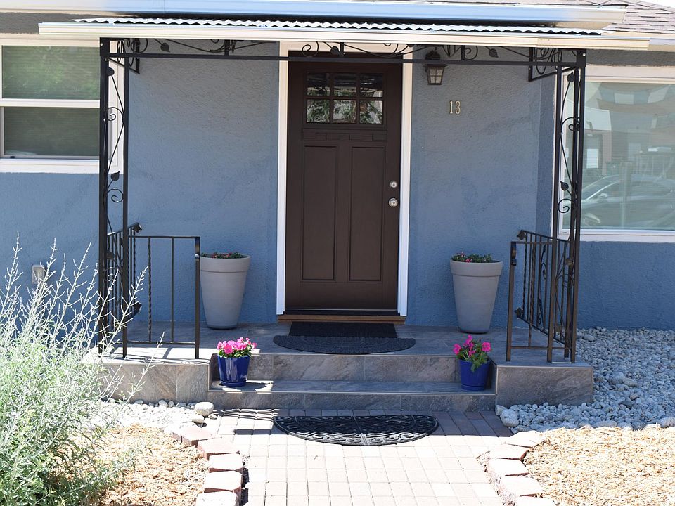2 bd, 1 bath newly renovated home and xeriscaped property available for rent October 1. Brand new kitchen and bath with tile floors and hardwood floors throughout. Available for 1 year lease at $1900/month. Lovely french doors open onto floating stairs down to a large patio with a private, fenced-in yard. Patio furniture is provided. Property has been beautifully xeriscaped with patio and privacy fence in back yard. House has air conditioning and new appliances including washer/dryer, gas range, microwave, dishwasher and refrigerator. The kitchen has a custom bar height butcherblock table to fit 2 bar stools. The living room is large and can accommodate an additional dining area. Up to 2 pets are considered for additional $25/pet/month. Dedicated on-street parking is provided. One month security deposit due upon signing. Application fee is $30/person. References required and showings by appointment only. House is located in the "Old North End", one of the nicest, safest, walkable and most charming neighborhoods in Colorado Springs. It is directly across the street from Penrose Main Hospital, in close proximity to parks and walking and bike trails, UC Health Memorial Hospital, the US Olympic training center and Colorado College and in walking distance to shopping centers and dining. It is less than 1 mile north of the downtown Colorado Springs which offers a variety of dining and entertainment venues. 1 year. No smoking. Well behaved dogs or cats allowed. Application fee is $30/person